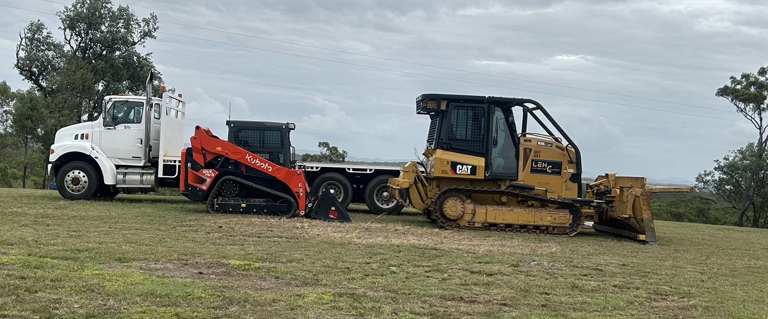 House pads, shed pads, blocks and ovals — graded right the first time. Owner-operated dozer, excavator and track-loader hire across Central Queensland.